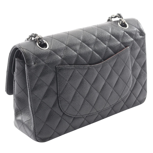 Chanel Classic Flap Bag Vintage Medium Caviar Black Silver Hardware