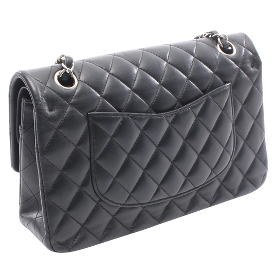 Chanel Classic Flap Bag Vintage Medium Lambskin Black Silver Hardware