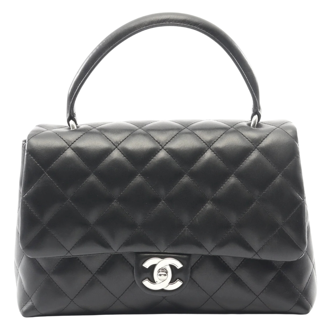 Chanel Matelasse Top Handle Bag Vintage Lambskin Black Silver Hardware