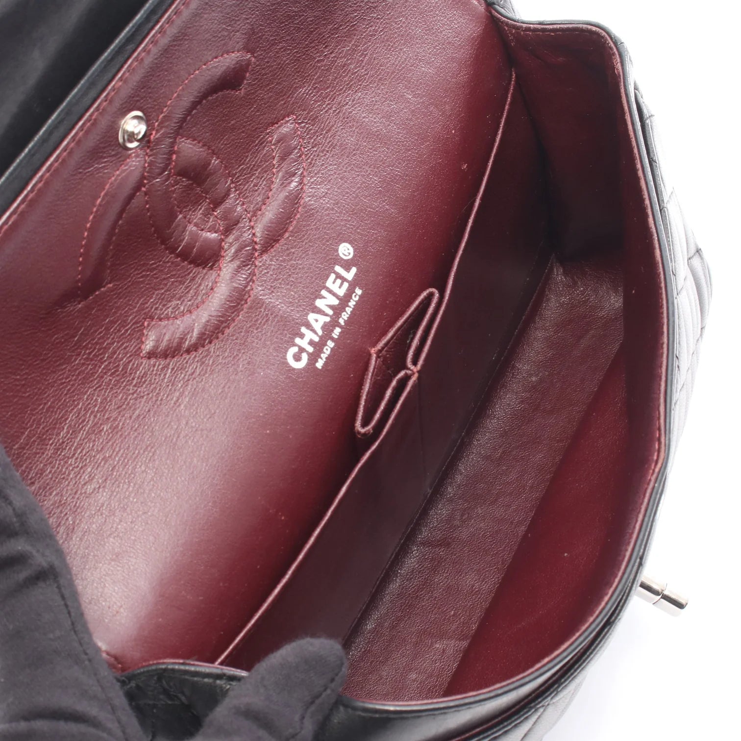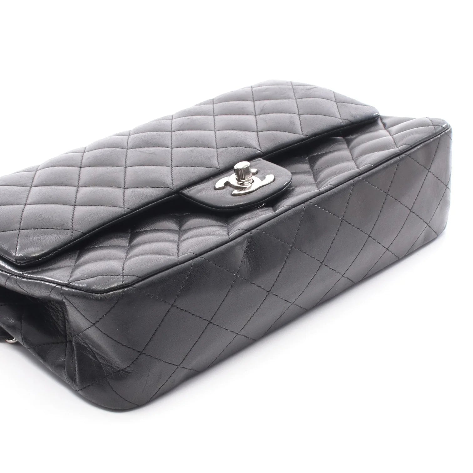 Chanel Classic flap Bag Vintage Medium Lambskin Black Silver Hardware